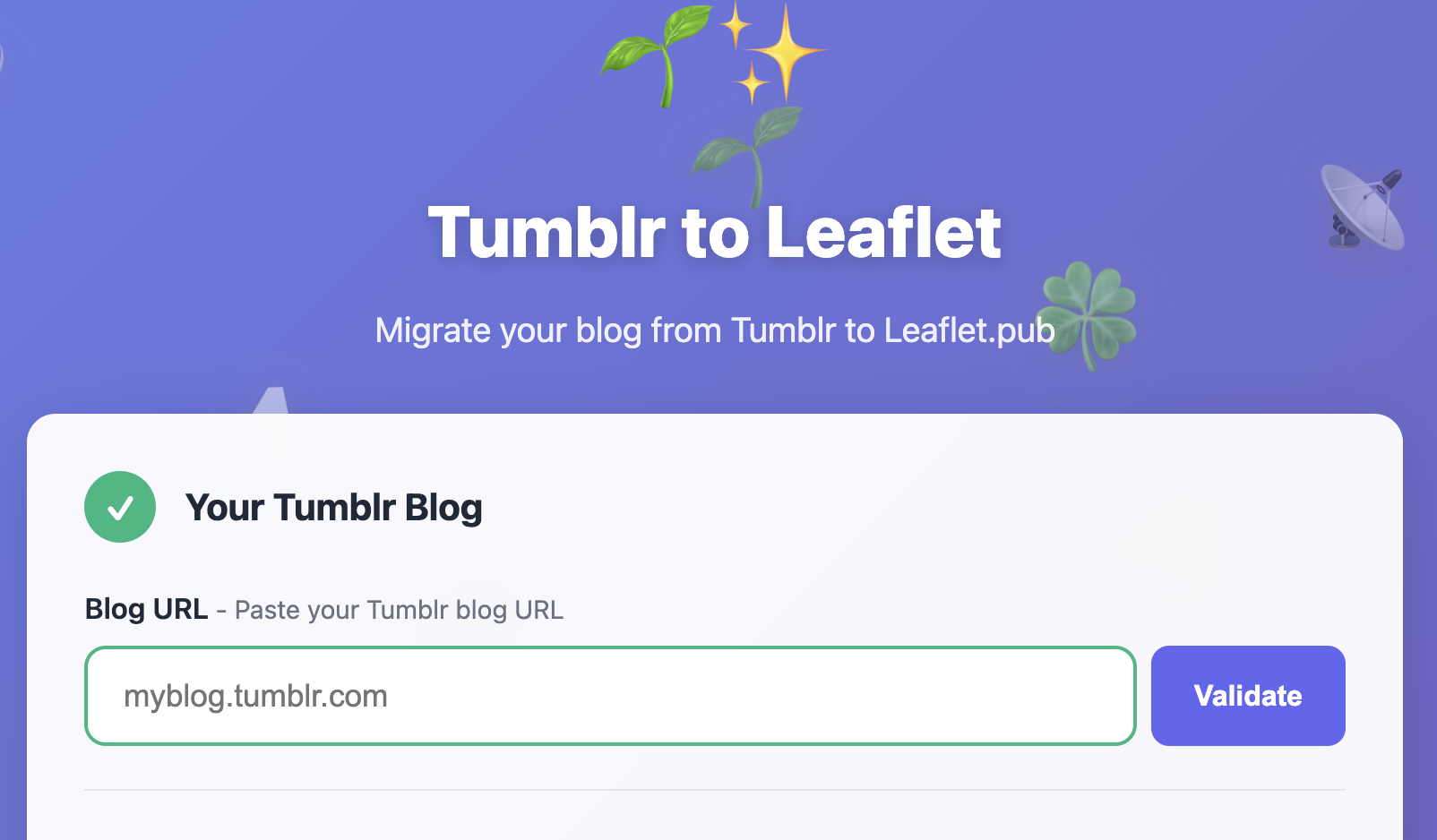 - Migrate your Tumblr blog to Leaflet.pub. Your words deserve a home you actually own, built on AT Protocol.